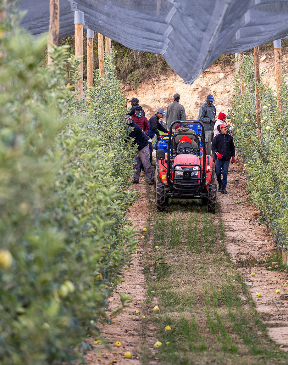 Cultivem Fuji, Golden i Granny Smith, tres varietats clàssiques i versàtils, pensades per acompanyar el dia a dia de qui sap apreciar l’essència i el bon gust.